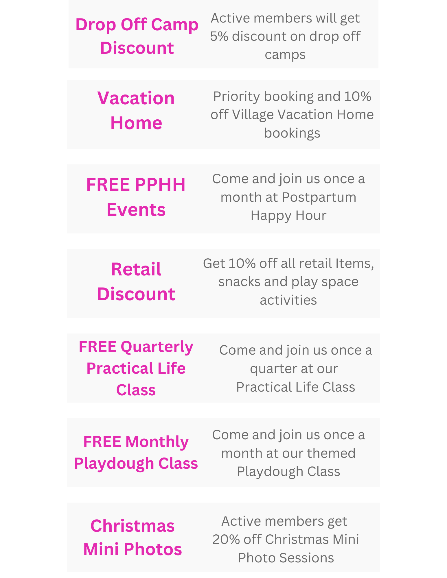 *All perks and discounts are for immediate family members only, not to be used for other families.